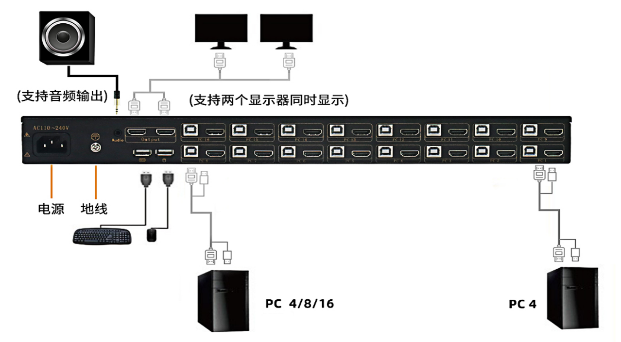 可级连多台设备,最多可管理512台计算机